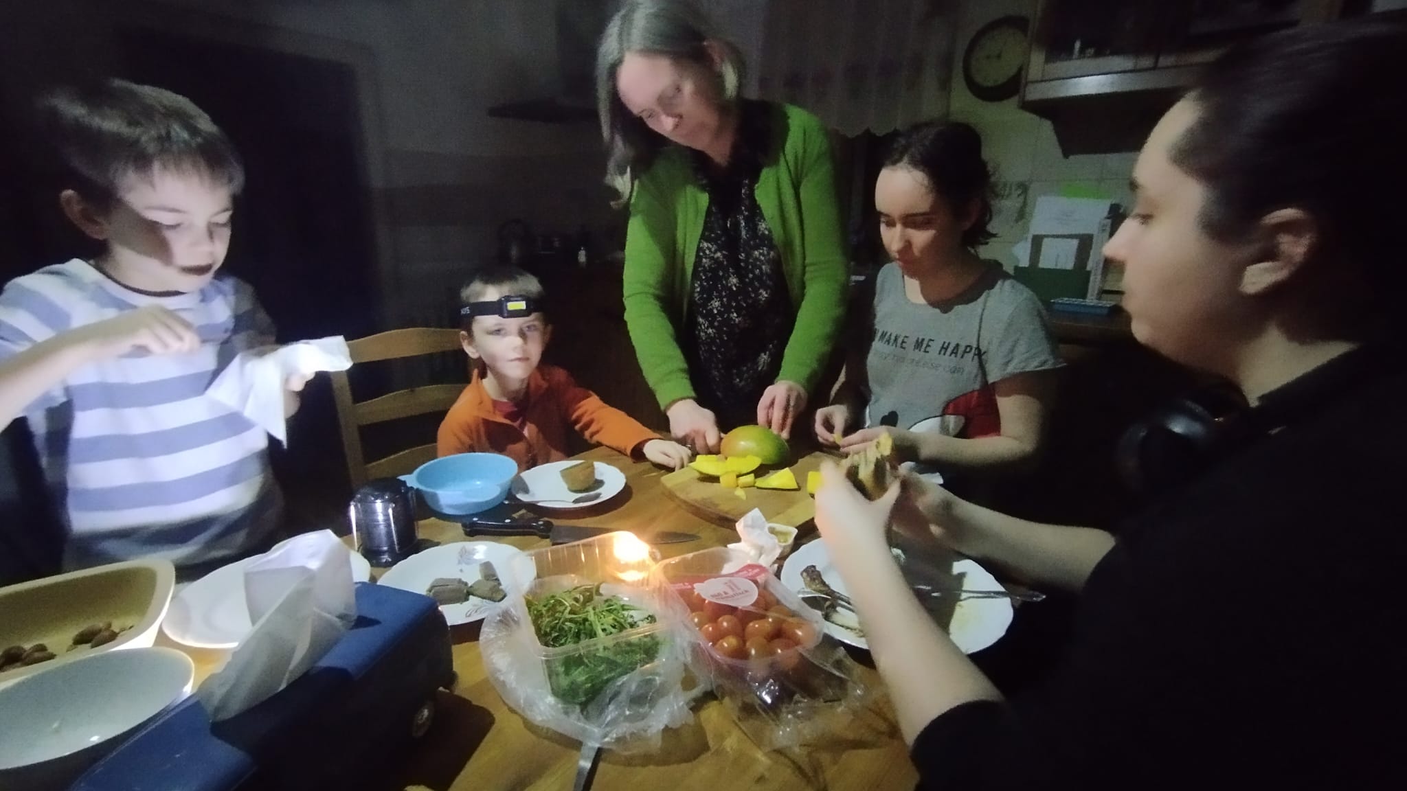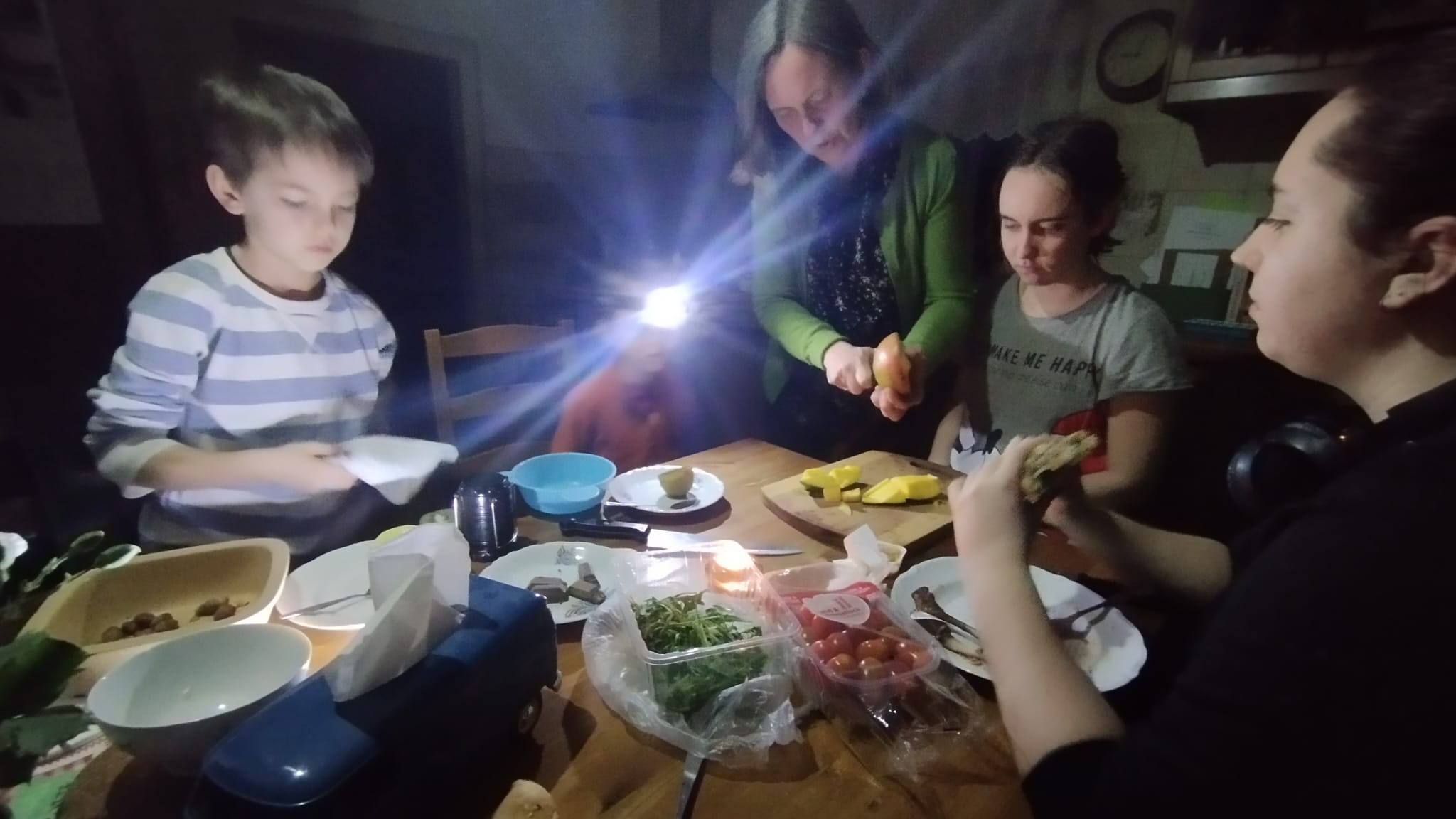 Agregat zadziałał, choć potrzebował dodatkowego obciążenia, by piec gazowy nie wariował. Wcześniejsze przygotowanie świec i latarek pozwoliło spokojnie wystartować. Zabrakło tylko przejściówki w przedłużaczu – trzeba było jej szukać z latarką.