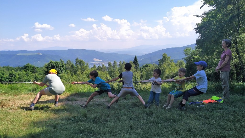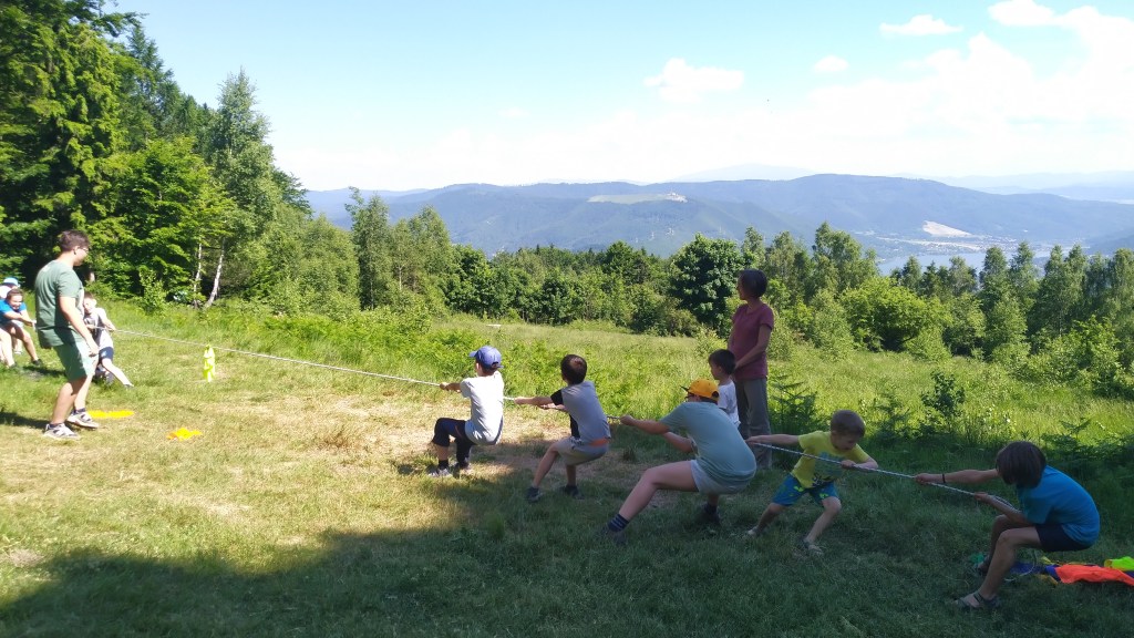 Było przeciąganie liny, rodzinne pisanie historii i zabawa w „Raz, dwa, trzy – partyzant patrzy” – leśną odmianę popularnej gry.